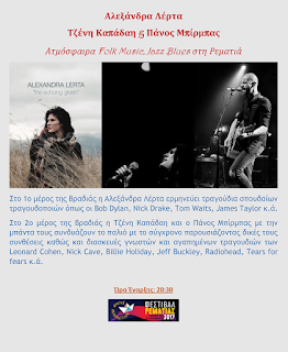 Συναυλία με την Αλεξάνδρα Λέρτα και την Τζένη Καπάδαη σήμερα στη Ρεματιά.